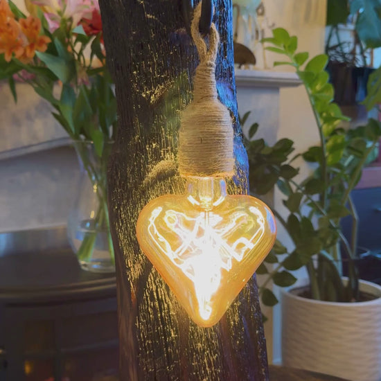✨ Add warmth and romance to your space with this handcrafted driftwood lamp 🌊🪵. Made from authentic driftwood, it carries the beauty and story of nature, with unique textures shaped by water and time. The heart-shaped Edison bulb ❤️💡 creates a soft, golden glow, perfect for cozy evenings and special moments. A metal heart accent at the top adds a charming and symbolic touch, making this lamp stand out as a true piece of functional art.